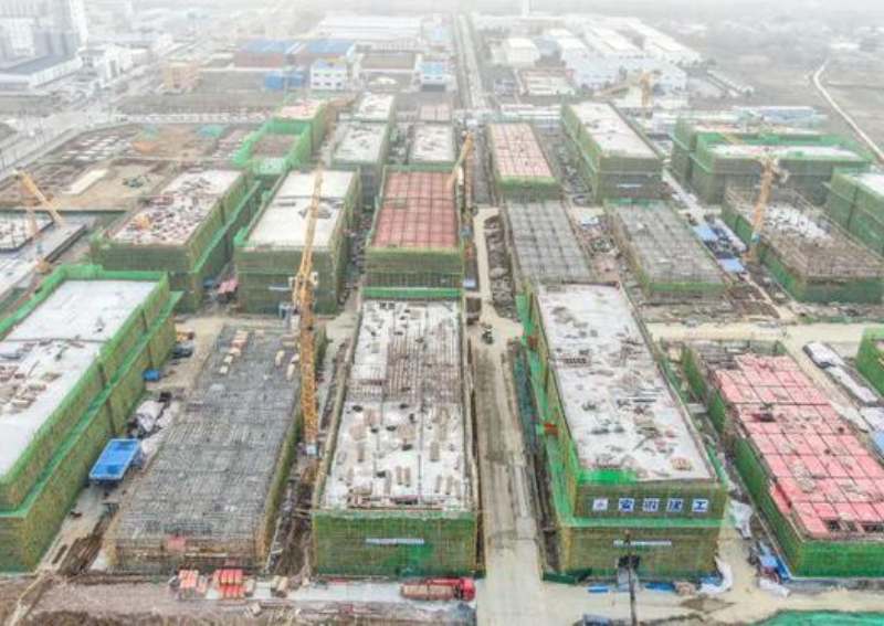走進(jìn)建設(shè)現(xiàn)場,只見塔吊林立、機聲轟鳴,一棟棟廠房已拔地而起。